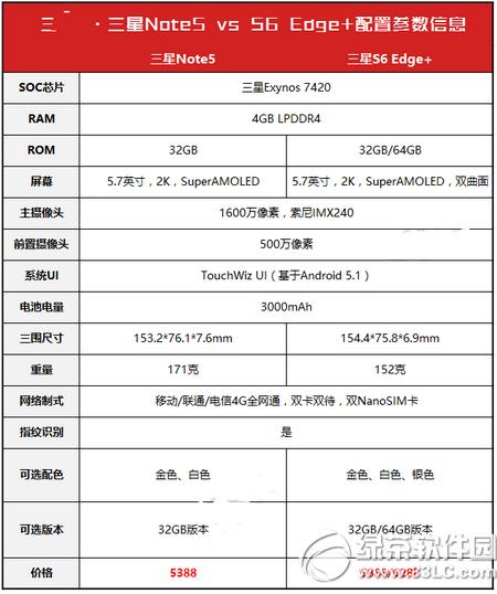 ▼按照惯例,首先送上三星Note5和S6 Edge+的详细配置参数和价格(国行版)信息,供大家知悉: