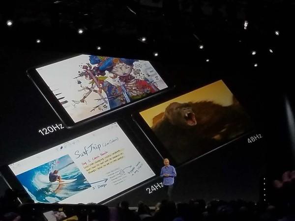10.5英寸iPad Pro发布 10.5英寸iPad Pro在外观上最大的升级是采用超窄边框设计,同时12.9英寸的iPad Pro也将采用同样的窄边框设计。新iPad Pro采用的True tone屏幕更加优秀,其最高亮度能够达到600nit,并支持广色域。另外,这块屏幕的刷新率达到了惊人的120Hz,是一般屏幕的两倍。