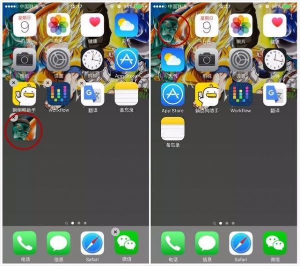 素材准备 按住任意图标,让图标晃动进入删除模式,滑动桌面,进入一个新的空白主屏幕页面,截图保存。(看完教程,鸭鸭将附赠一大波3D视觉壁纸,耐心学哦)