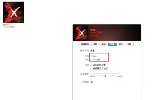 5、在显示简介里面,选择“选项”;把选项里面的开始时间跟停止时间设置好;也就是你记录的时间,填写进去(该时间段就是你要截取的手机铃声);然后点击确定;