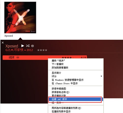 7、创建好AAC版本,就会在改革取得信息中显示,同样名字的短时间的歌曲;这就是你截取的手机铃声,但是现在还是不可以用的;