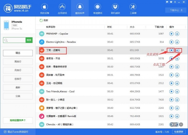 一、下载喜欢的铃声 首先得有铃声,我们如何获得我们喜欢的铃声呢:下载并安装最新版的爱思助手。(PC端和移动端都要安装哦!)如下图所示:进入“酷炫铃声”,找到自己喜欢的铃声并下载;