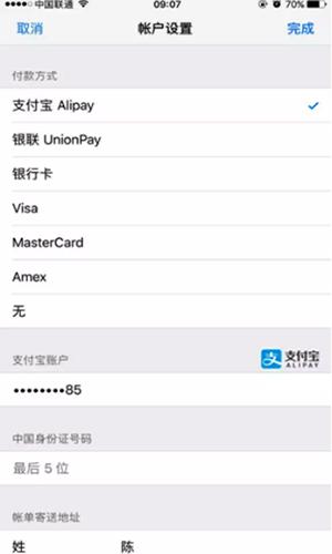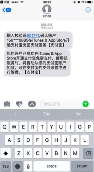 2、选中这个选项,并输入支付宝账户和身份证号码后 5 位之后,该账户绑定的手机号码将会收到验证码,输入验证码之后,我们的支付宝账户就可以成功在 iTunes 以及 App Store 中开通支付宝免密支付。
