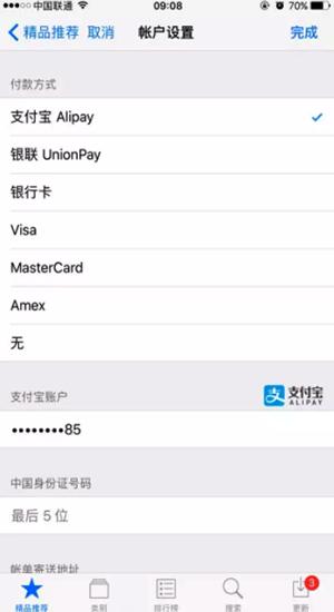 4、如果用户觉得上面提到的设置方式太过麻烦,可以打开 App Store,在“精品推荐”标签的最底部选择“绑定银联卡支付”,迅速进入到“账户设置”界面。 苹果应用引领新的上网速度革命,给您带来超快体验。 |