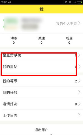 2.在【我】界面中可以看到星豆贡献榜和星钻,星钻是赠送的,可以充值,星豆可以提现,直接点击星豆贡献榜,进入到星豆界面,点击提现;