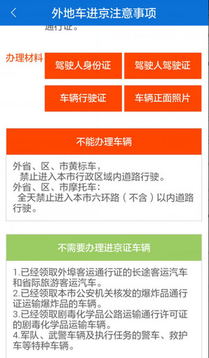 PS:车主们可以基于个人需求来选择,进京证每次有效期为七天,七天之后可以申请办理延期5天。12天过后若仍需用进京证只能去进京的综合检查站重新办理7天的证件。在北京市各条高速公路即将进入市区处设有进京证办理点及检查站。 目前来说进京证app安卓北京交警app还仅是内测版本,虽然有“进京证办理”功能,但是只是测试而已,并不能真正办理进京证。 而北京进京证app的苹果版交警在线app则已经在 App Store 上线,其他功能均可用,但是北京进京证办理功能被阉割了!所以北京进京证目前来说还无法在手机上正式办理,请大家静待版本更新。 苹果应用引领新的上网速度革命,给您带来超快体验。 |