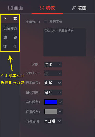 2.设置直播特效与插件