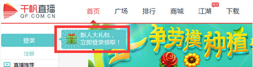 (三)、赠送帆币直接进入账户余额; 点此进入充值中心页面,快速充值:点我哦https://pay.56.com/paycenter/ 注: 1、本活动属新人充值特权,与“首充大礼包”不冲突,即:使用1元充值特权后,下次充值还可领取“首充大礼包”; “首充大礼包”快速通道:点我哦http://qf.56.com/activity/firstpay/index.html 2、仅限充值1元,充值其他金额不享受100帆币赠送,只享受首充大礼包; 3、获得充值1元送1元特权后,首次充值非1元的用户,特权将不保留; 4、非首次充值用户不享受此特权,且充值页面将无此项选择。 二、新人登录,礼包送不停 (一)、新人首次登录千帆直播,即可获得新人礼包,礼物、飞屏、千帆星等你来拿! 1、未登录状态下提示新人礼包,点击即可登录领取;