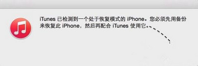 2.随后,电脑上的iTunes软件会提示,检测到一个处于恢复模式的iPhone设备。点击【好】