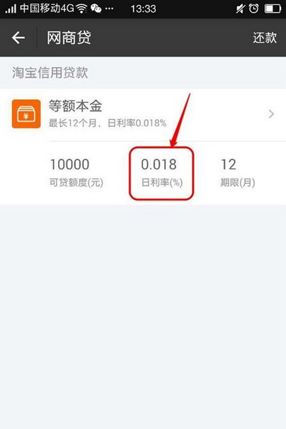 2、然后进去到网商贷页面,在其页面点击【等额本金】