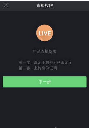 2.进入到申请界面,申请权限需要绑定手机号码,并且上传身份证明,点击下一步;