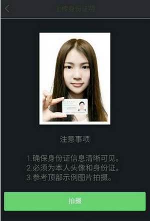 3.身份证明需要手持身份证进行拍摄,确保身份证信息清晰可见,还有必须为本人头像和身份证,点击拍摄,按照提供的模板样式拍摄即可!