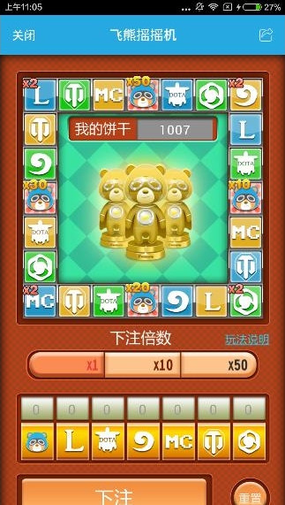 2、另外,用户也可以通过玩游戏“飞熊摇摇机”,获取饼干。