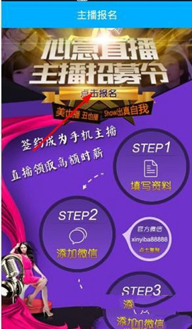 导读想和朋友分享您喜欢的苹果应用? 我想发上微博该是个不错的主意, 更高效的应用平台:App Store浏览太麻烦? 没法找到高质量的应用? 下载苹果应用大全 省时!省力!!省心!搜索功能强大,搜索结果... 想和朋友分享您喜欢的苹果应用? 我想发上微博该是个不错的主意, 更高效的应用平台:App Store浏览太麻烦? 没法找到高质量的应用? 下载苹果应用大全 省时!省力!!省心!搜索功能强大,搜索结果优先列出限免软件和免费软件。 心意直播怎么申请当主播?心意直播申请主播方法介绍。心意直播是一款时下非常火的直播平台,如果你是才华横溢,颜值爆表的帅哥美女,如果你是逗逼搞笑,风趣幽默的谐星大咖,如果你就是喜欢变现展示自己,都可以来心意直播当主播,那么心意直播怎么申请当主播?让小编给大家介绍一下心意直播申请主播方法吧。 心意直播当主播方法步骤如下: 1、打开软件,在首页上方的滚条幅上,有着主播招募令,点击进入。