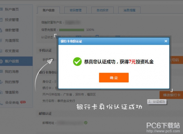 3.填写自己的银行卡信息,获得投资回报: