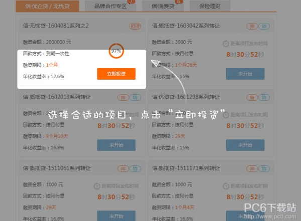5.充值之后就可以投资了: