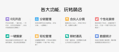 先给大家介绍一下萌店。 萌店隶属于上海晖硕信息科技有限公司(以下简称"微盟"),是基于人与人的信任关系,以消费者为中心,注重产品口碑和品质的社会化电商平台。萌店提供了海量一手正品货源供个人开店者分销,与众安保险合作提供商品正品保障,并且提供了多种推广渠道和多种支付方式,可以让开店变更简单,同时萌店无需囤货,一件代发,让开店真成变得零门槛。 微盟是中国最大的微信开发服务商。从2013年4月发展至今,凭借着丰富的产品功能、全新的产品设计、快速的产品创新、超出用户期待的产品价值,基于微信为企业提供开发、运营、培训、推广一体化解决方案。 截止2015年7月,入驻微盟商户数已超120万,年底有望突破200万,市场需求日益旺盛,微信已成为移动互联网最大入口。微盟涉及电商、餐饮、汽车、房产、医疗、旅游等多个行业。2015年微商元年,微盟将改变商业、颠覆商业业态! 自微盟创立以来,就结合代理商本地分销,辅以总部上海市场直销的模式开拓业务,除服务一线城市之外,更是同步深耕二、三、四线城市,规模领先同业。截至目前,微盟在全球范围已拥有代理1000多家,其中一级代理商合作共计488家;二级代理商合作共计669家,海外代理来自美国、法国、新西兰、加拿大、澳大利亚等多个国家和地区。