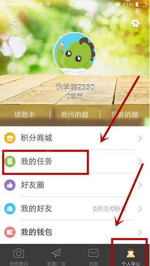 导读想和朋友分享您喜欢的苹果应用? 我想发上微博该是个不错的主意, 更高效的应用平台:App Store浏览太麻烦? 没法找到高质量的应用? 下载苹果应用大全 省时!省力!!省心!搜索功能强大,搜索结果... 想和朋友分享您喜欢的苹果应用? 我想发上微博该是个不错的主意, 更高效的应用平台:App Store浏览太麻烦? 没法找到高质量的应用? 下载苹果应用大全 省时!省力!!省心!搜索功能强大,搜索结果优先列出限免软件和免费软件。 阿凡题怎么签到?阿凡题签到方法介绍。阿凡提是一款非常强大的帮助同学们学习的软件,在阿凡题中,每天签到可以领取学币,那么阿凡题怎么签到?让小编告诉大家阿凡题签到方法吧! 1、打开拍照搜题app,点击右下角的“个人中心”,然后点击“我的任务”按钮;