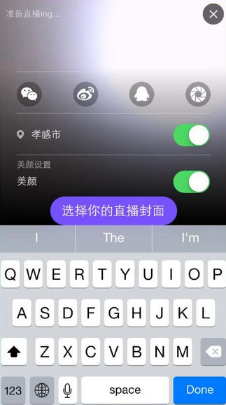 3、点击中间下方的摄像头按钮即可选择直播封面以及话题和美颜设置等信息进行直播哟。