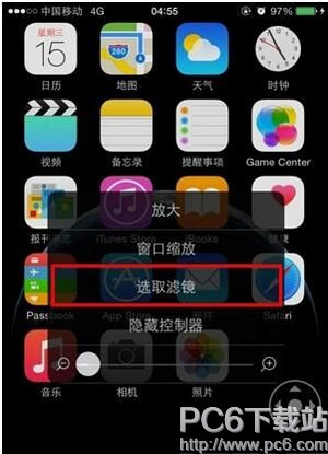 6、点【选取滤镜】,选择【弱光】,把最下面的光标移动到最左边(即表示不放大屏幕),最后点击屏幕空白处就完成。 PS:上述设置之后,屏幕上会出现类似小圆点的一个虚拟按钮,可以随意移动位置。点击“隐藏控制器”可选择 隐藏。 苹果应用引领新的上网速度革命,给您带来超快体验。 |