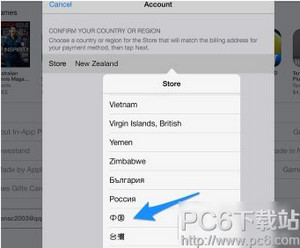 4、在 Store 应用商店一栏,我这里以切换到中国为例,点击选择下拉列表中的“中国”选项