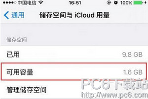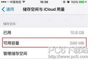一.打开手机设置-通用-存储空间与iCloud用量。可以看到还有586M。