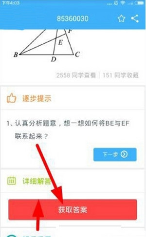 2、进入题目的详细介绍,点击获取答案按钮;