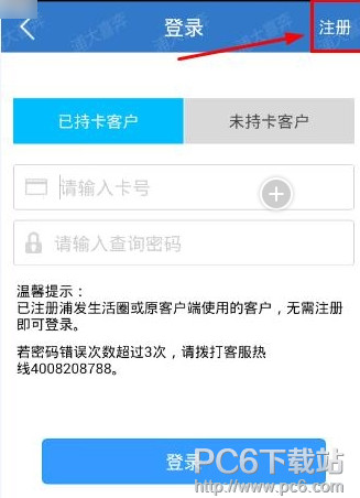 3、在这里界面,您可以直接登录,但是没有注册的朋友,点击右上角的注册,如下图;