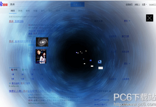 百度黑洞为什么会出来个特效?这是百度工作人员专门做的特效,很有意思,只要输入相关的字词就可以在页面中产生相应的特效。经过试验,总结了一下,在百度电脑版搜索“黑洞、闪烁、抖动、摇一摇、晃动、翻转、反转、旋转、跳跃、打雷”均会有特效出现。那么都有哪些特效呢? 1.在百度输入“黑洞”,然后一个巨大的黑洞占据了屏幕,把所有的东西都吸走!