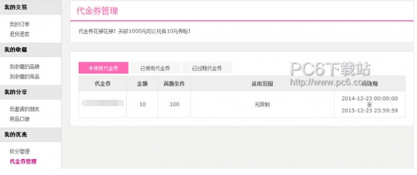 您可以使用积分来兑换网站代金券,目前有一种面值的代金券可以选择: 6、如何使用积分兑换: