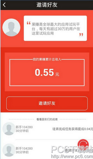 4、在邀请好友页面可以邀请好友一起来玩这款软件赚钱哟;