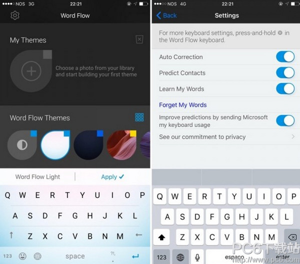 一些个性化选项,比如自定义背景,既可以选择应用中预设的背景,也可以选择你自己喜欢的图片作为背景。Word Flow要求的最低系统版本为iOS 9,应用内置了8套不同的主题。大家可以先看下视频,了解到该如何设置颜色: 具体的设置方法如下: 1.进入word flow输入法设置界面,找到背景