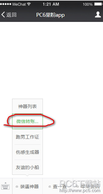 以上就是pc6小编带来的微信转账生成器在哪里。 苹果应用引领新的上网速度革命,给您带来超快体验。 |