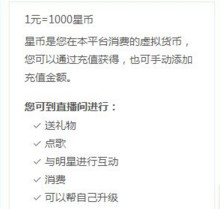 2.充值星币:1元人民币等于1000个星币。通过正规渠道充值购买的星币永久有效。 ps:以上就是来疯直播星币是什么解释,希望能帮助到大家。 苹果应用引领新的上网速度革命,给您带来超快体验。 |