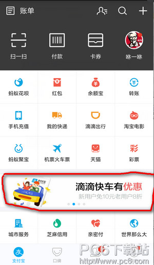 导读想和朋友分享您喜欢的苹果应用? 我想发上微博该是个不错的主意, 更高效的应用平台:App Store浏览太麻烦? 没法找到高质量的应用? 下载苹果应用大全 省时!省力!!省心!搜索功能强大,搜索结果... 想和朋友分享您喜欢的苹果应用? 我想发上微博该是个不错的主意, 更高效的应用平台:App Store浏览太麻烦? 没法找到高质量的应用? 下载苹果应用大全 省时!省力!!省心!搜索功能强大,搜索结果优先列出限免软件和免费软件。 滴滴快车10元优惠券在哪里?滴滴快车老用户打八折在哪里找到?滴滴快车有放出活动了,即日起使用滴滴快车就可以享受滴滴快车10元的优惠券,老用户还可以享受滴滴快车打八折的优惠,但是很多朋友问不知道滴滴快车10元优惠券在哪里?滴滴快车老用户打八折在哪里找到,下面pc6小编就教大家滴滴快车10元优惠券,赶快来看看滴滴快车10元优惠券地址吧。 1.首先下载最新的支付宝客户端