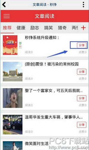 2、在文章阅读界面,选择你想分享的那篇文章进入;