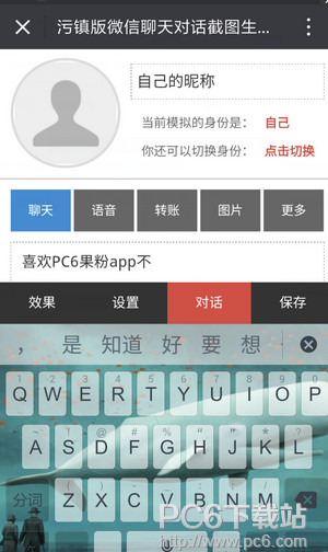 2.关注pc6果粉app,点击装逼神器,看聊天对话器:
