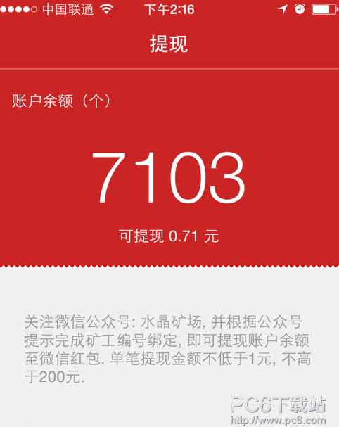 在软件内,不设次数限制,提现金额不足10元无法提现; 3.提现的钱什么时候可以到帐? 提现的钱将于提现后24小时内发放至提现支付宝账号; 4.关于提现奖励发放时间? 提现采用支付宝转账的形式,转账一般在上午10点至晚上22点截止; 5.关于汇率? 晶片提现,使用晶片兑换水晶的汇率解释权归水晶直播官方所有,晶片提现或兑换水晶即代表同意《水晶直播服务条约》 120000能换120元人民币,100个水晶币等于1元。 苹果应用引领新的上网速度革命,给您带来超快体验。 |