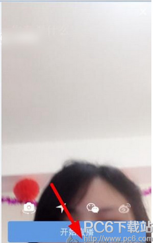 3、在开始直播界面,可以选择切换镜头,分享,微信,微博分享,点击开始直播按钮