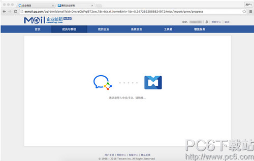 六、通讯录导入 设置帐号后,企业微信的通讯录都会同步到企业邮箱中。 备注:导入所需的时间根据账号数量不同而不同。在导入过程中关闭窗口或切换页面,不影响导入,会自动执行完成。