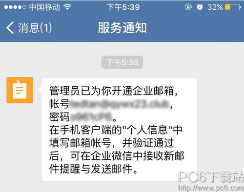 八、为成员开通邮箱 在通讯录勾选员工,并点击“开通邮箱”,或员工的资料中点击“开通邮箱”,可以为员工开通邮箱。开通后员工才能正常使用企业邮箱。 企业邮箱的帐号和密码将会通过企业微信通知。 备注: a、企业微信的帐号被删除,将无法通过企业微信通知该员工; b、同一个企业微信开通多个企业邮箱,企业微信只会接收最后开通的企业邮箱的开通通知。
