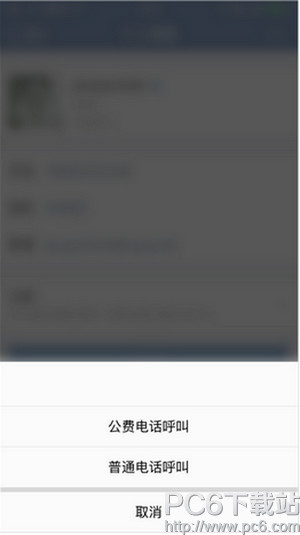 3、企业联系人资料页,点击手机号或座机号,在弹出菜单里选择“公费电话呼叫”;