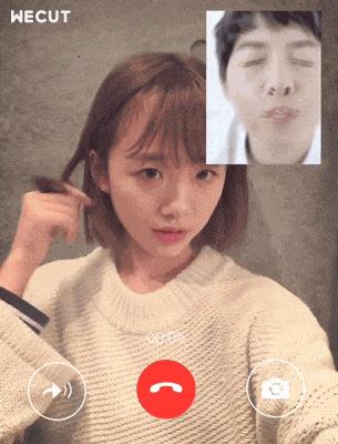 3、这个时候,你就会看到许多明星各种各样的贴纸哦!选择一款自己喜欢的明星贴纸保存后,你就看到以上你和明星视频通话的动图哦!是不是很有趣呢?!