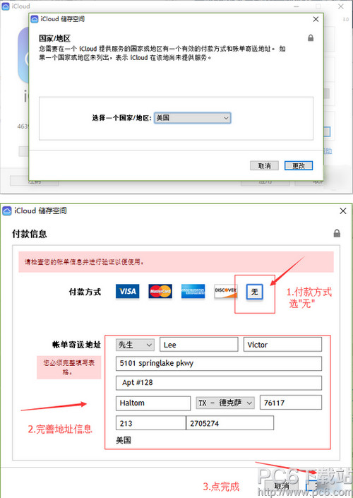第四步:选择你想转去的国家或地区,点“更改”, 然后可以看到,付款信息可以选择 "无"。 完善地址信息,即可完成。