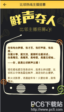 一般一到两个工作日内就可以通过了。各位美女赶快试试吧。 以上就是pc6小编来的比邻直播怎么开直播,希望能帮助到你。 苹果应用引领新的上网速度革命,给您带来超快体验。 |