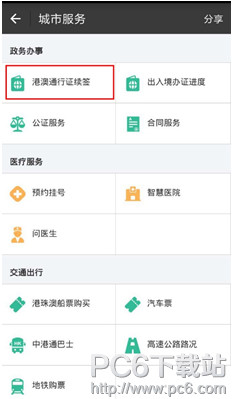 导读想和朋友分享您喜欢的苹果应用? 我想发上微博该是个不错的主意, 更高效的应用平台:App Store浏览太麻烦? 没法找到高质量的应用? 下载苹果应用大全 省时!省力!!省心!搜索功能强大,搜索结果... 想和朋友分享您喜欢的苹果应用? 我想发上微博该是个不错的主意, 更高效的应用平台:App Store浏览太麻烦? 没法找到高质量的应用? 下载苹果应用大全 省时!省力!!省心!搜索功能强大,搜索结果优先列出限免软件和免费软件。 支付宝港澳通行证续签怎么办?支付宝港澳通行证续签在哪里?微信开通续签港澳通行证后,现在支付宝也开始港澳通行证续签,那么支付宝港澳通行证续签在哪里?支付宝港澳通行证续签怎么办?下面随pc6小编来看看。 武汉、南昌、广东、广西、贵州五省市居民,已可以在支付宝城市服务窗口,办理港澳通行证续签。在此之前此项服务已在广东试点开通。 目前,这五省市据民通过支付宝办理续签非常简便,1分钟即可办理完毕。 办理流程如下:打开支付宝——点击【城市服务】——选择【港澳通行证续签】——选择【省份】,然后进入港澳通行证续签办理条款须知页面,该页面有对服务受理范围的规定说明和咨询电话,点击同意此条款后,就可进行签注类型选择了。