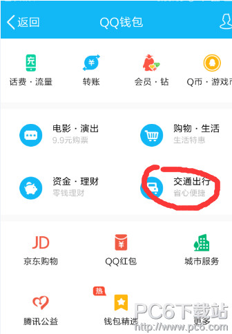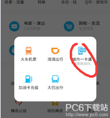 3、在交通出行中选择城市一卡通,如果没有该选项功能,那代表你的手机非安卓,所以并不支持该活动: