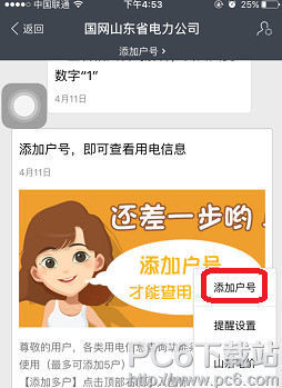 方法一、催费单上查户号 方法二、在服务窗添加户号页面,用在【电力登记的身份证】反查户号(可能查不到) 方法三、在添加户号页面输入【电表编号】反查户号(电表编号:即电表条码) 方法四、查看家中电表编号,然后拨打95598索要户号 2、如何查用电密码: 一般默认密码为户号的后6位 如户号:1234567890 密码为:567890 以上就是pc6小编为大家带来的支付宝电费缴费户号添加教程了。 苹果应用引领新的上网速度革命,给您带来超快体验。 |