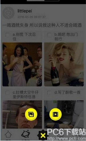 3、点击最下方中间的“+”号,用户即可快速发表图文,同时还可以加入到直播的行列中,让你可以根据任何话题和人pk,针锋相对,碰撞观点,演绎属于你自己的奇葩说;也可以和小伙伴组成cp,秀恩爱秀默契,成为纠纠直播的小s和蔡康永;当然,你还可以独自发起话题,晒宠物,炫技能,分享生活,寻找和你志同道合的伙伴们。