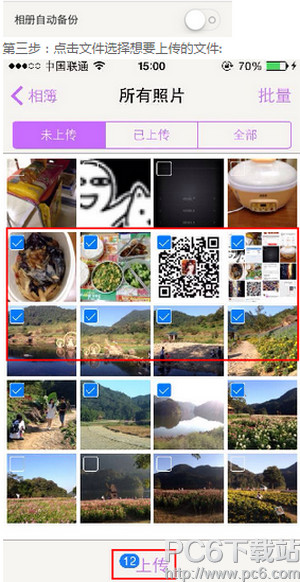 第二步:选择想要上传文件的相册: